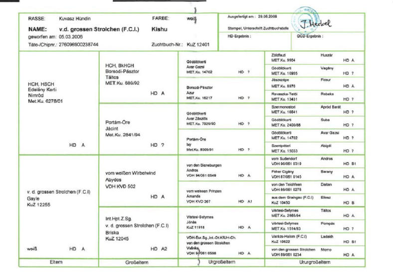 Ahnentafel - ´Klub für Ungarische Hirtenhunde - KfUH