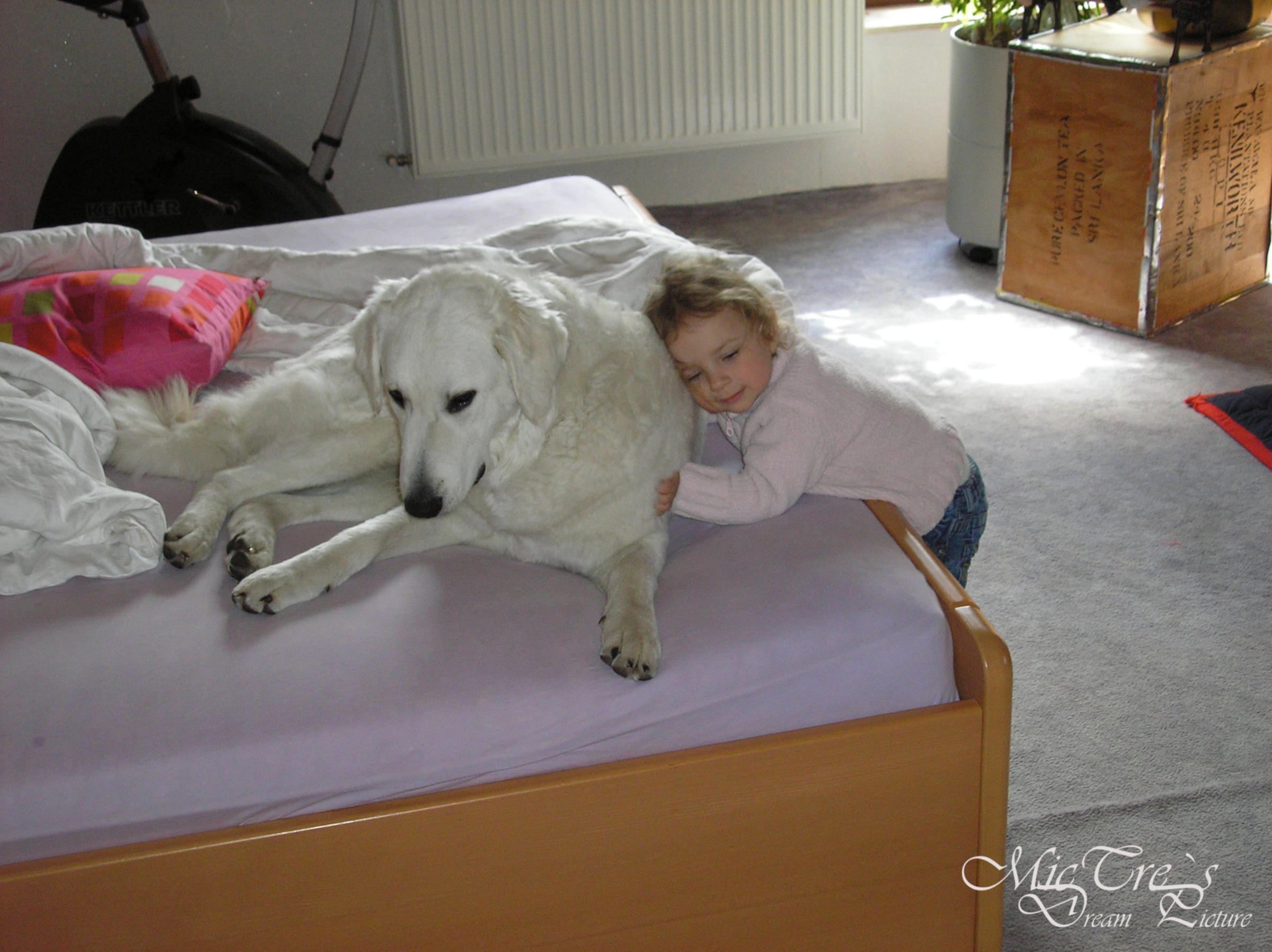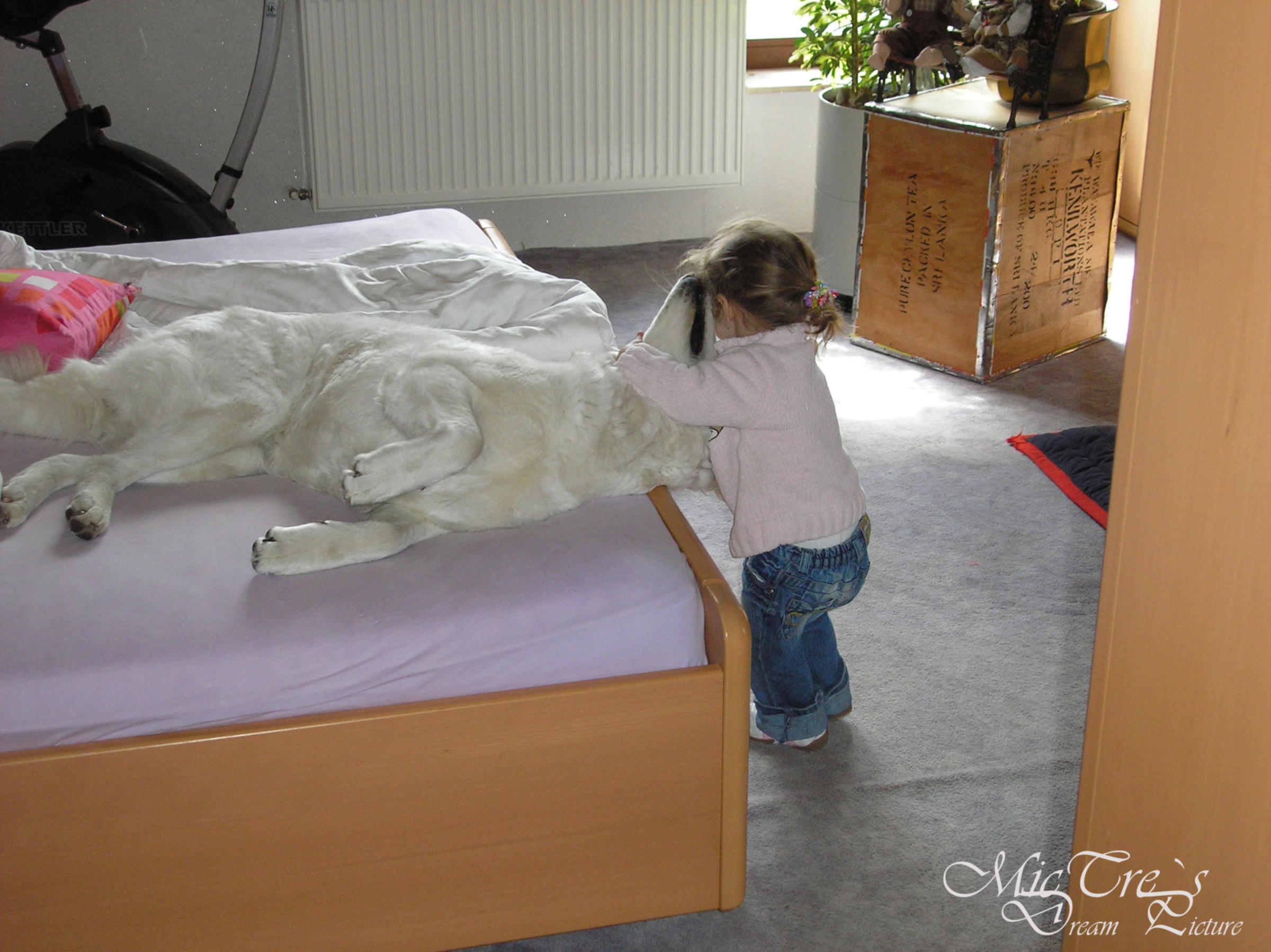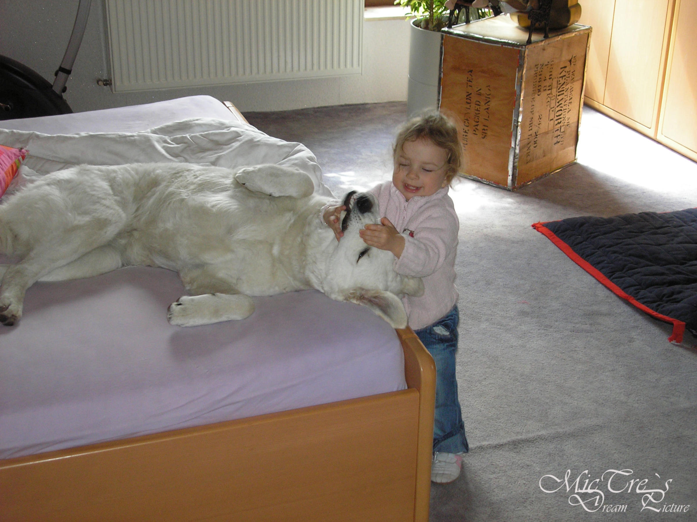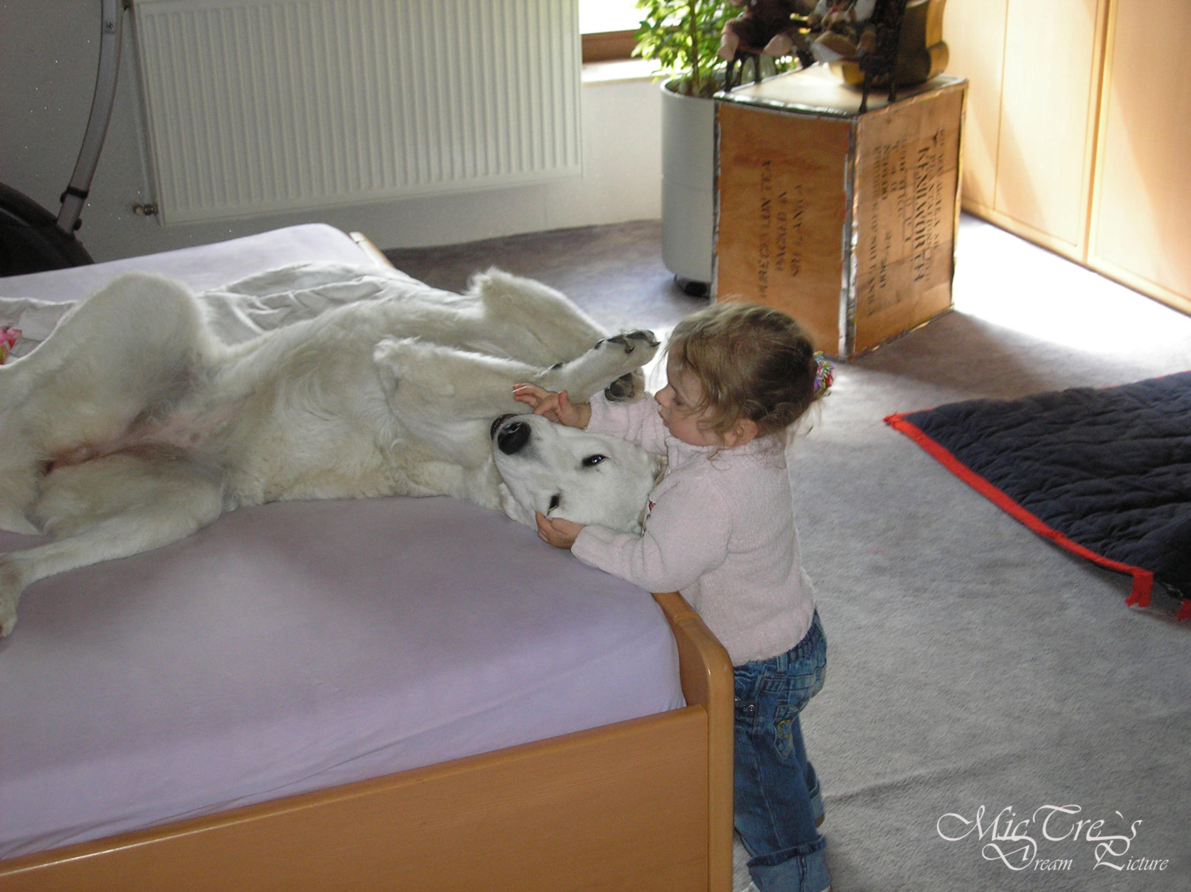 Wenn man seinen Hund und seine Kinder vernünftig sozialisiert, dann geht so etwas wie oben gut,