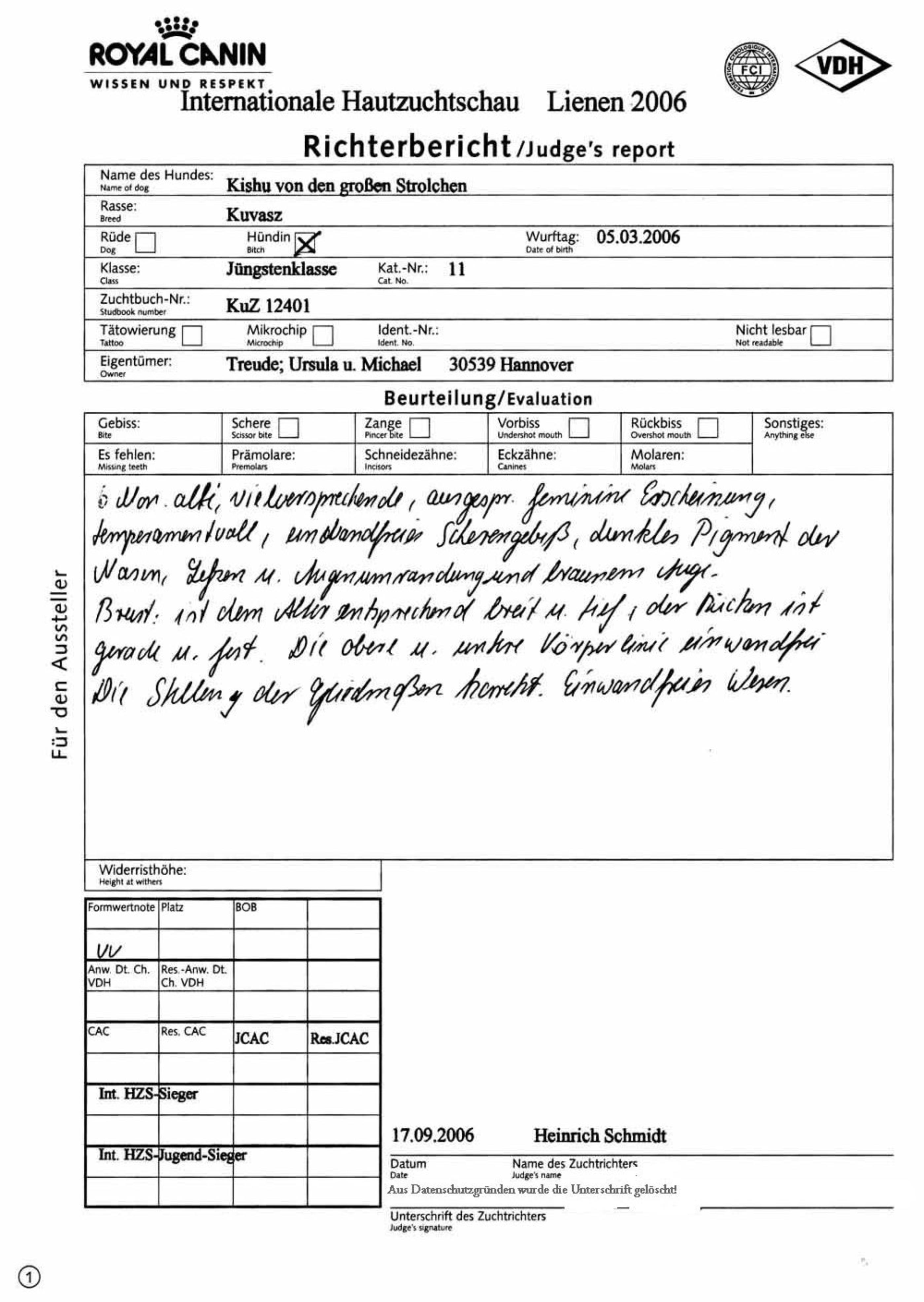 KfUH - Internationale Klub-Hauptzuchtschau Lienen 2006 , Jüngstenklasse, Formwertnote: vv,