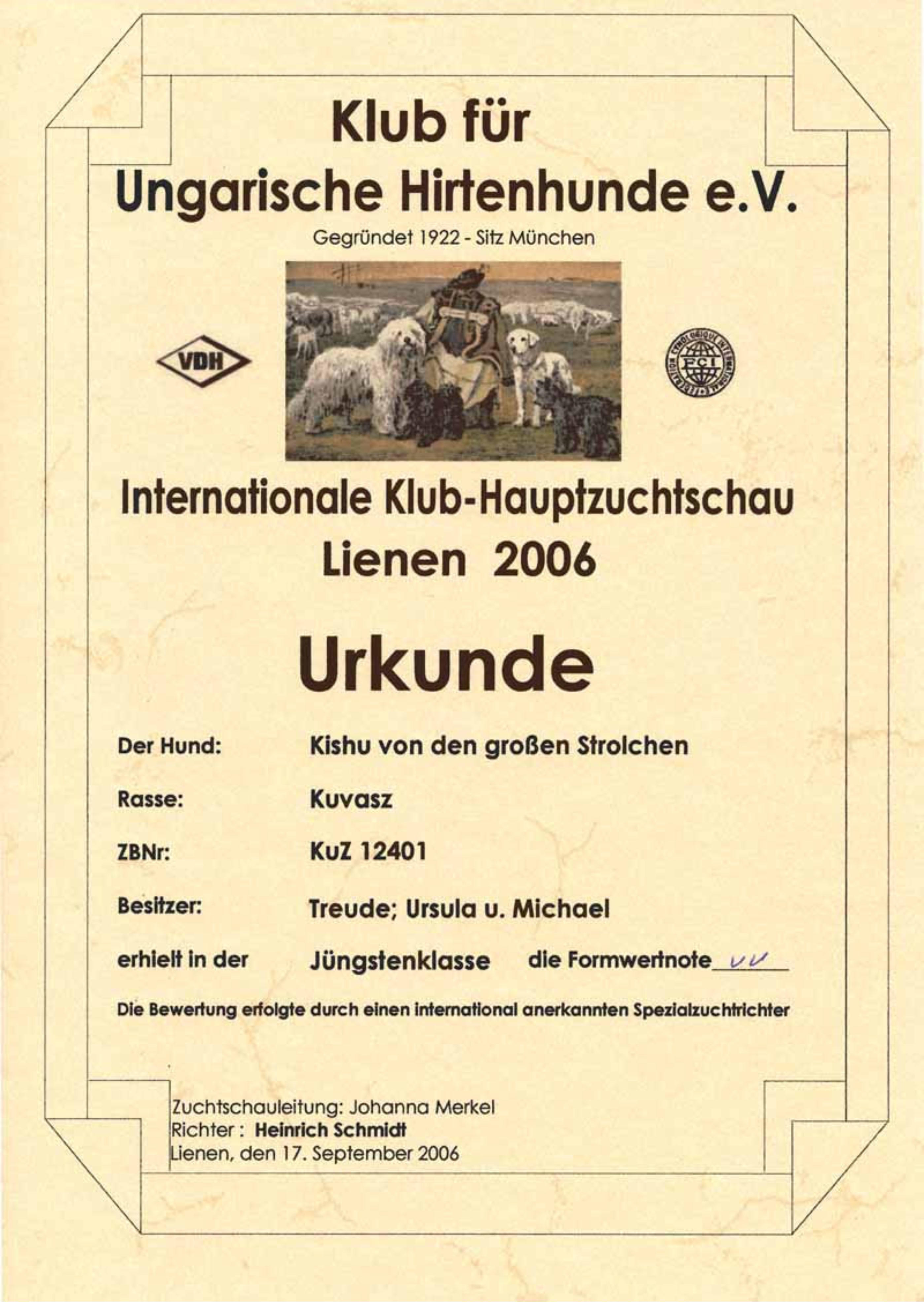 KfUH - Internationale Klub-Hauptzuchtschau Lienen 2006 , Jüngstenklasse, Formwertnote: vv,