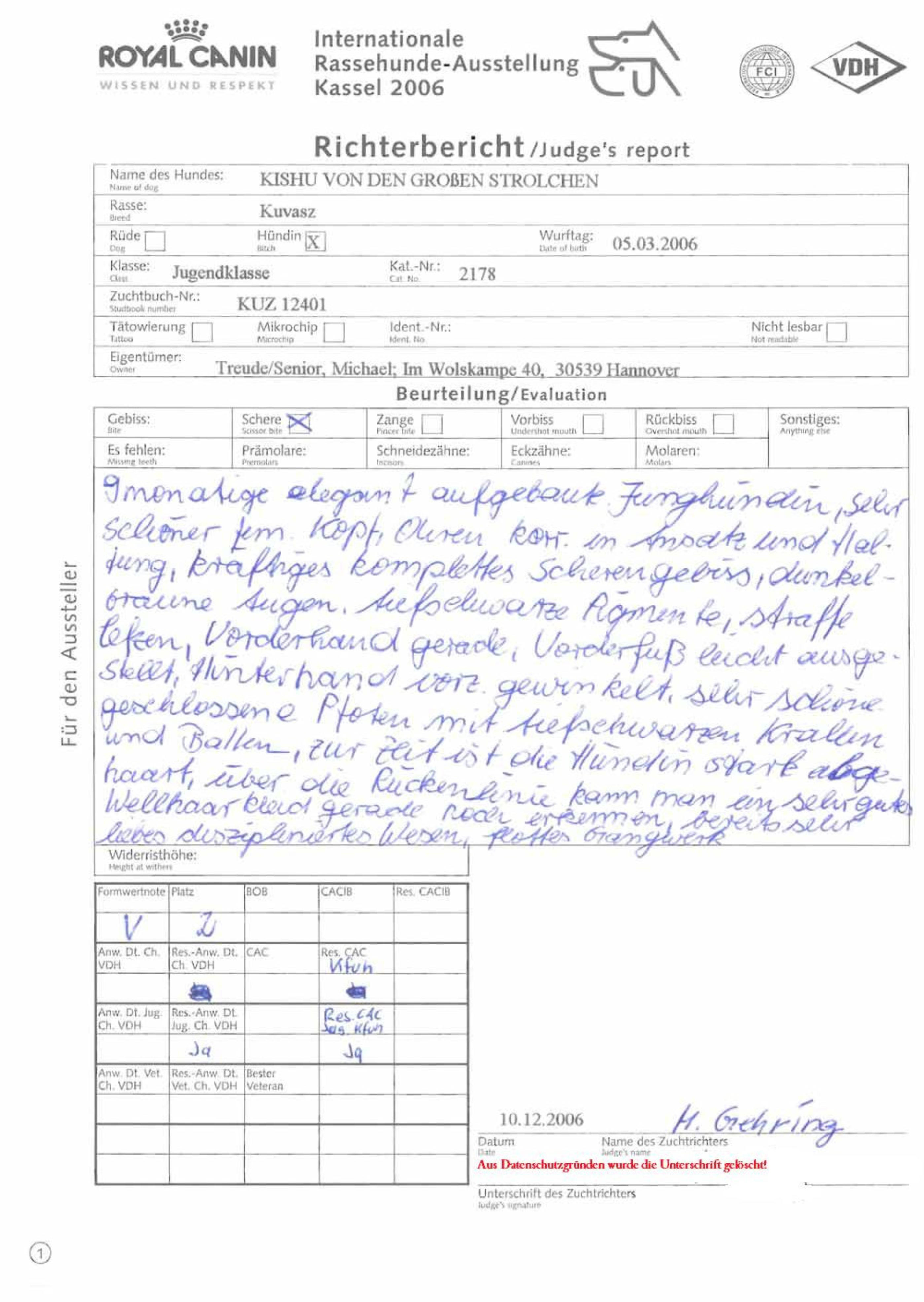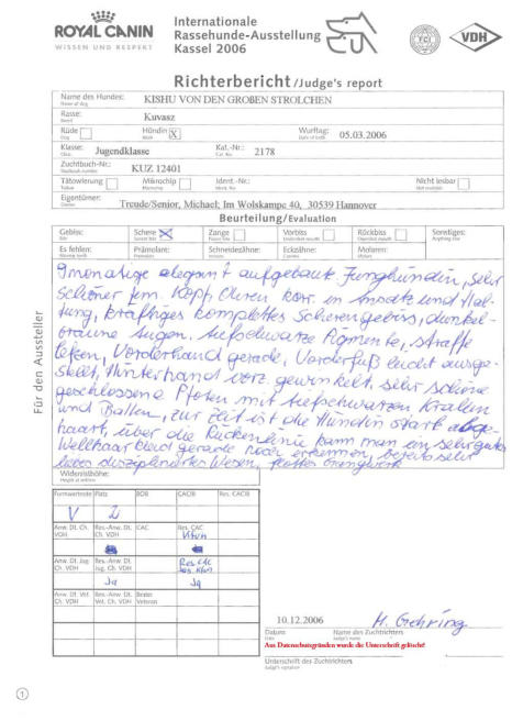 IRA - Internationale Rassehund-Ausstellung Kassel 2006 , Jugendklasse Formwertnote: V2,