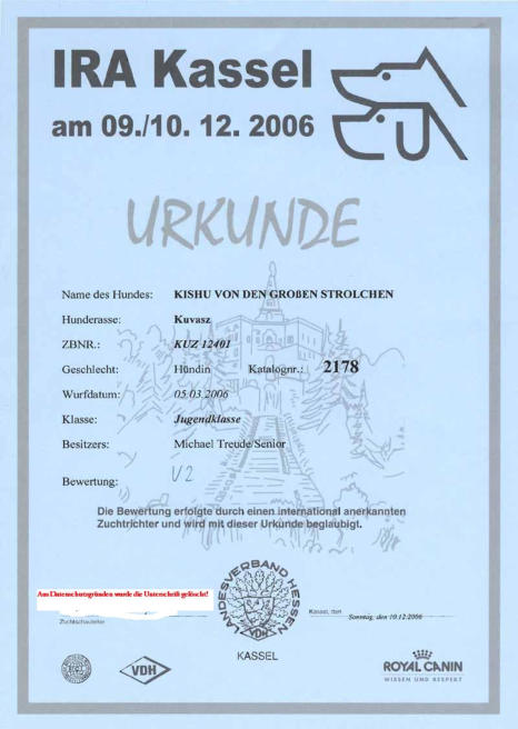IRA - Internationale Rassehund-Ausstellung Kassel 2006 , Jugendklasse Formwertnote: V2,