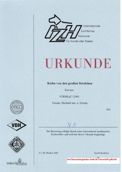 VDH Internationale-Zuchtschau Hannover 2007 am 27. Oktober 2007, Zwischenklasse Formwertnote: