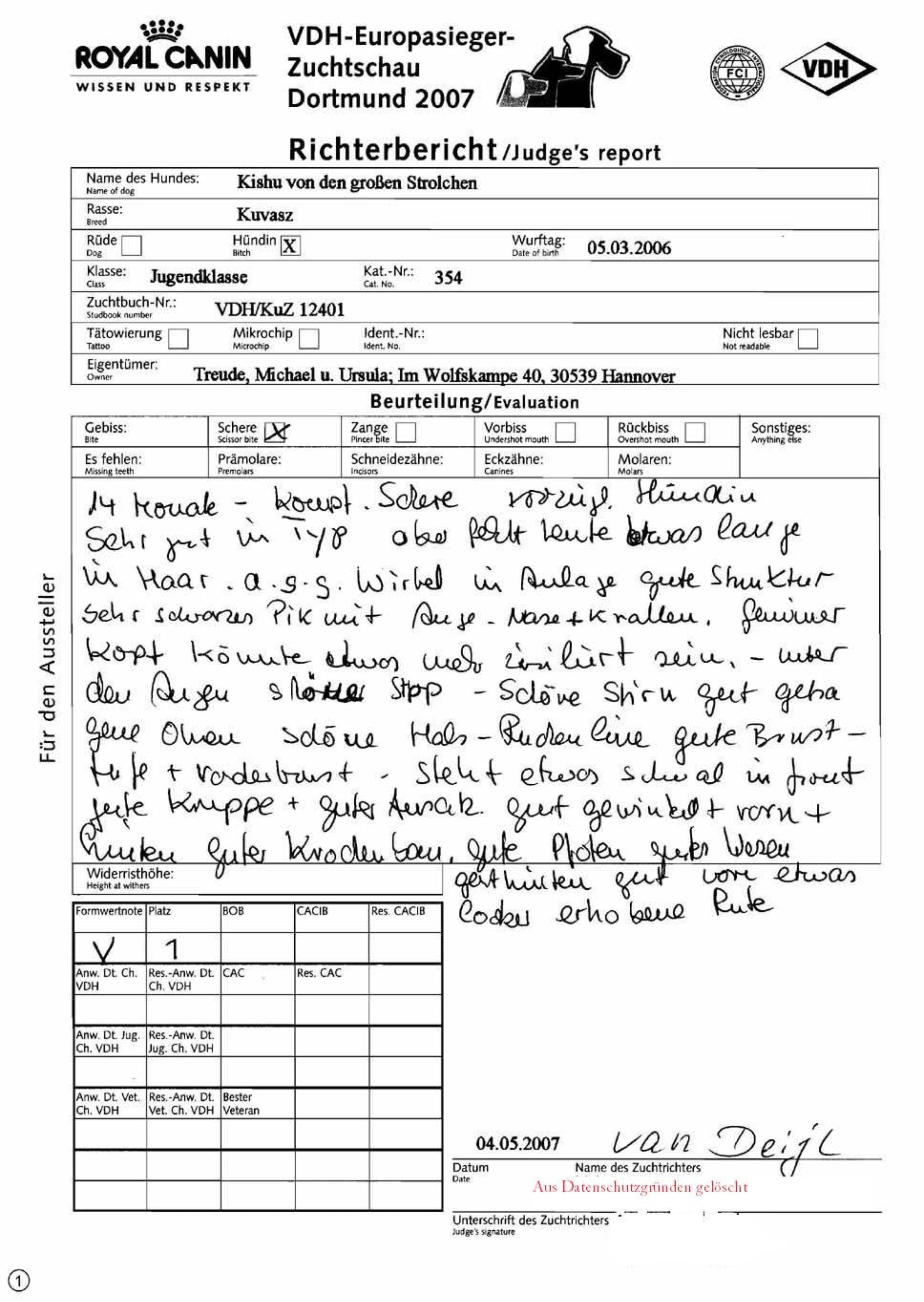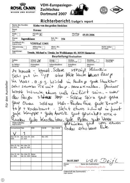 VDH Europasieger-Zuchtschau Dortmund 2007 am 04. Mai 2007, Jugendklasse Formwertnote: V1,