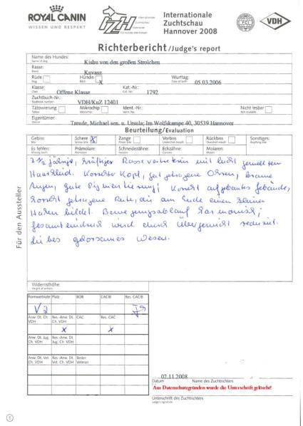 VDH Internationale-Zuchtschau Hannover 2008 am 02. November 2008, offene Klasse Formwertnote: