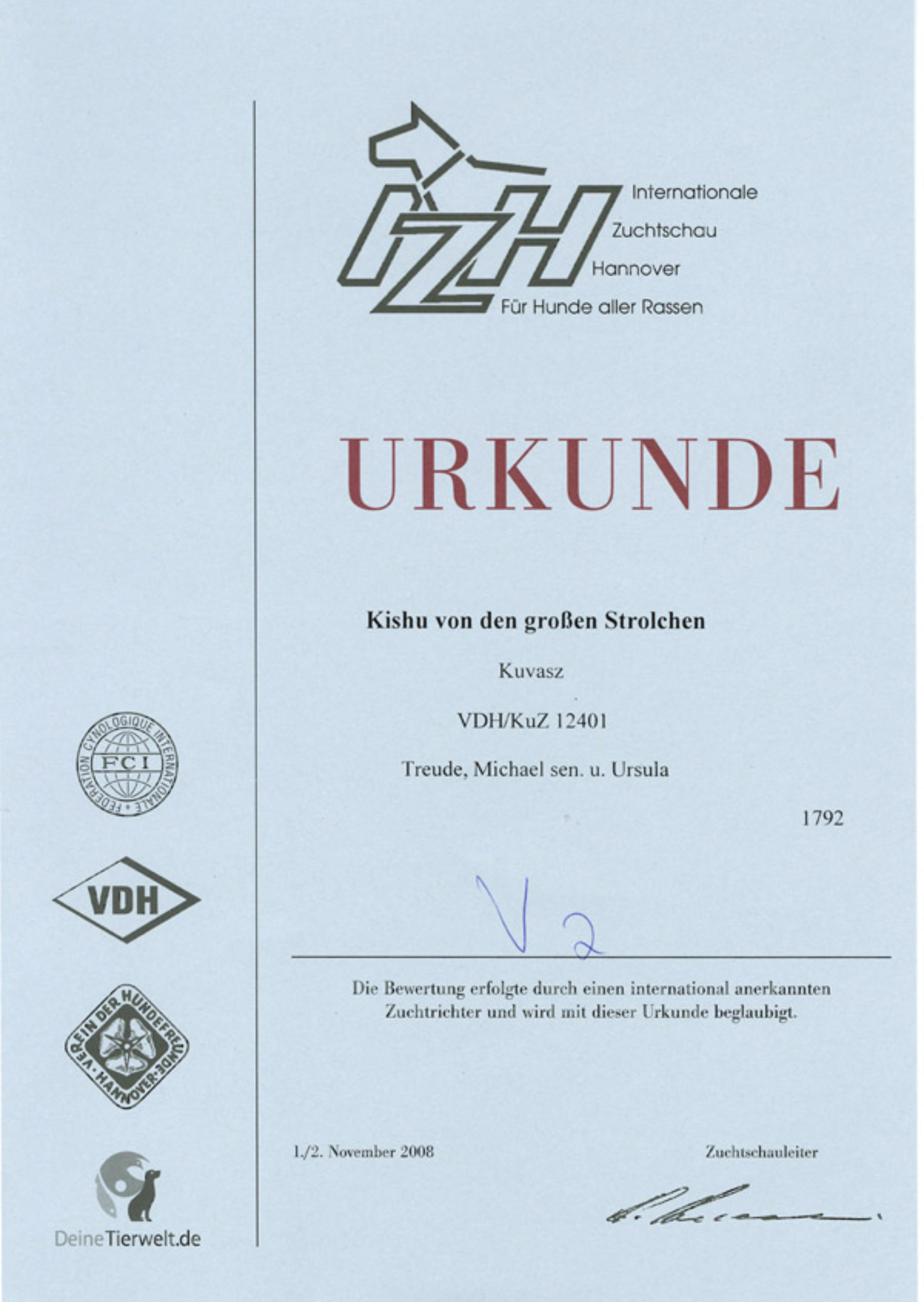 VDH Internationale-Zuchtschau Hannover 2008 am 02. November 2008, offene Klasse Formwertnote:
