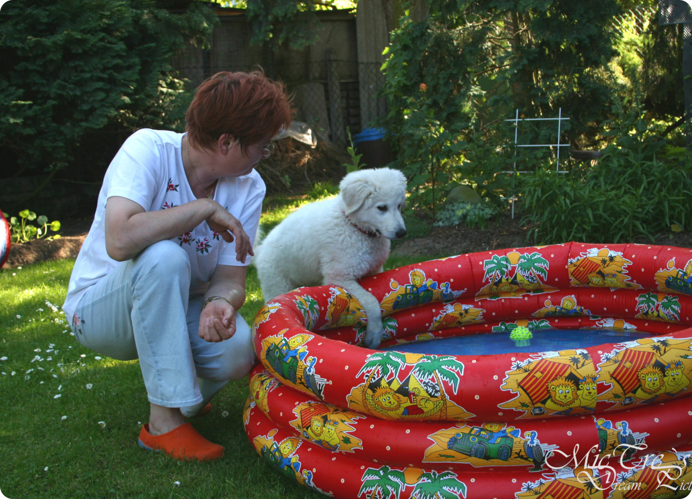 Kuvasz wusste sie die Vorteile der Transportwagen schnell zu schätzen, man spart das laufen...Besuchen Sie mit Ihrem